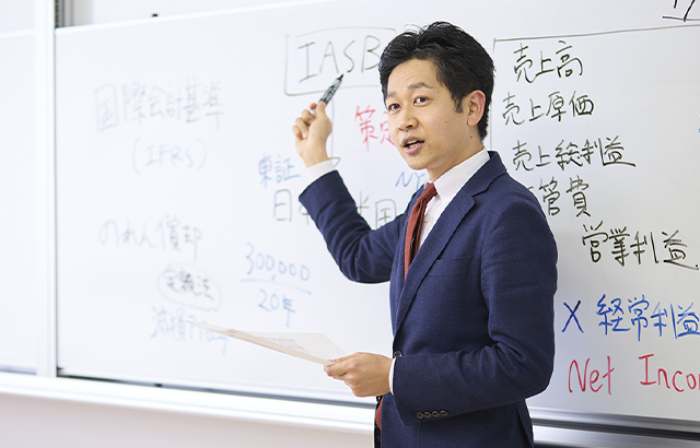 資格取得や学部独自の試験で、「会計」「IT」「英語」の運用能力、学びの質を保証します。