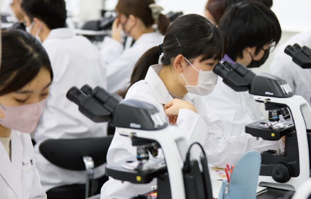 Q これからどんな学びに力を入れていきたい? 授業では、先生が臨床検査技師として経験された話をしてくださることがあります。なかでも興味を持ったのは、病理医が治療方針決定に役立つ情報を臨床医に提供する際に、臨床検査技師が手術で採取した臓器・組織の顕微鏡標本を作成するため、スピードや高い技術が必要であること、また、臨床検査技師の経験を積んだのち、さらに細胞検査士や超音波検査士などの資格を取得し、専門性を高めていけるということです。今はまだ基礎固めの段階ですが、3年次から始まる学外実習に向けて、知識や技術だけでなく患者さんとの接し方やチーム医療に必要な連携について修得する必要もあり、予習や復習が欠かせません。臨床検査技師をめざして意欲的に学ぶ姿勢を持ち続け、病気の早期発見・治療に力を尽くし、一人でも多くの人の健康寿命を延ばすことに貢献できるよう成長したいです。