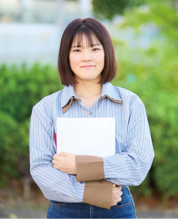 大好きな祖父母をはじめ、小学生の頃からボランティアを通して交流した地域の方々に恩返ししたい。そんな思いから公務員を志望しました。希望の進路を実現した今、授業や実習で磨いた「心に寄り添って聴く力」「相手の身になって考える力」「思いを伝える力」を発揮し、広く地域に貢献していこうと意欲に満ちています。