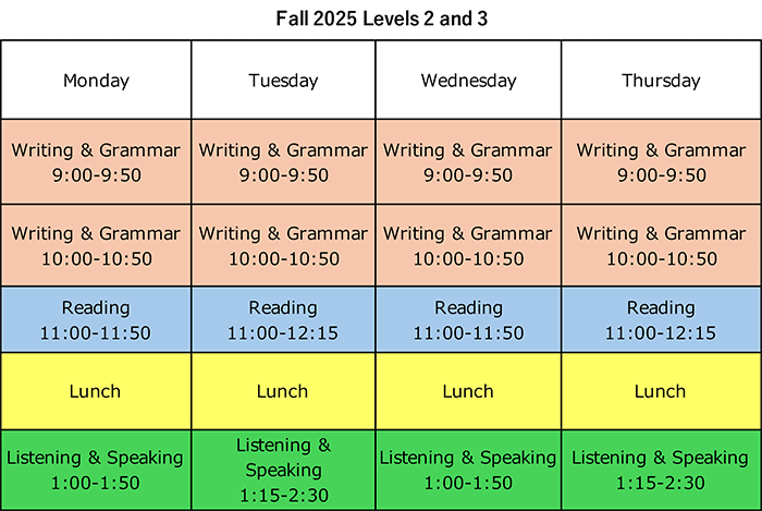 Here is my class schedule. My classes started at 9 am and ended by 2:30 pm at the latest. Also, I had no class on Fridays.