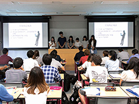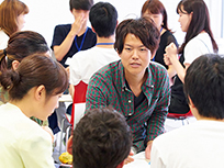 PBL(課題解決)型授業として、企業・NPO・行政機関などの連携団体から与えられた具体的なテーマに対し、チームでその解決のためのアイデアを考え、企画を立案し発表します。実践を通して「社会人基礎力」となる「考える力」「チームで働くカ」「前に踏み出す力」を身につけます。