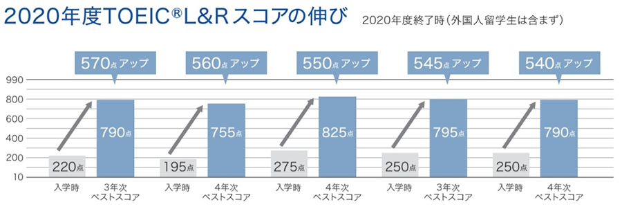 TOEIC®スコアを基準に全学生対象の英語学修を提供します。