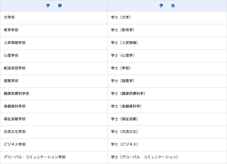各学部の卒業者に次の通り、学士の学位を授与する。