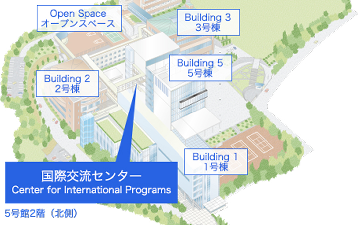 星が丘キャンパス5号館2階にある国際交流センターについて、関連施設と合わせてご紹介します。