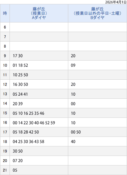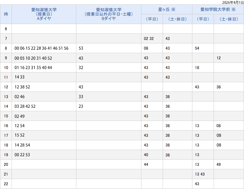 愛知淑徳大学行(藤が丘~愛知淑徳大学)運行ダイヤ