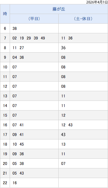 藤が丘発(バス停は藤が丘駅3番出口すぐ)