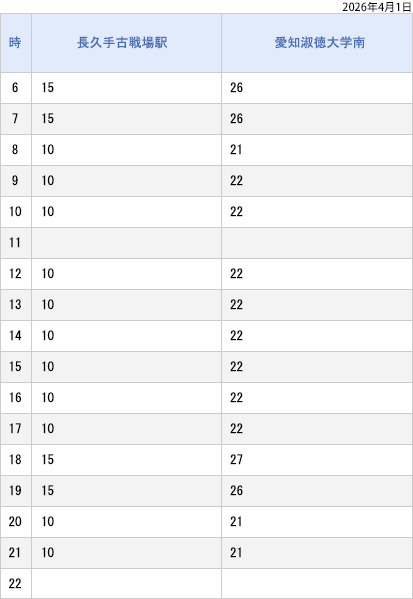日進中央線(赤池~長久手古戦場)の土・休日の時刻表をご紹介します。