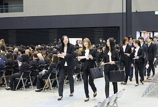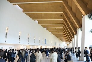 街中が美しい桜に彩られた4月2日(木)、ポートメッセなごや第1展示館にて愛知淑徳大学の入学式が挙行されました。約2,200人の新入生が真新しいスーツを身にまとい、凛とした姿で式典に参列しました。