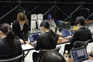 障がい学生支援活動団体「あすてく」は、主に聴覚に障がいがある学生の学修支援に取り組んでいます。入学式では音声をリアルタイムで文字情報にする「パソコンテイク」を実施。閉式後、「あすてく」の代表学生2名が登壇して活動内容を紹介し、大学の理念「違いを共に生きる」を実践することの大切さを伝えました。
