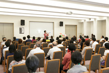 講演会の会場となった名古屋外国語大学・名古屋学芸大学中央図書館には学生、大学院生、大学教職員が集まり、諏訪先生が口にする言葉の一つひとつにじっくりと耳を傾けていました。