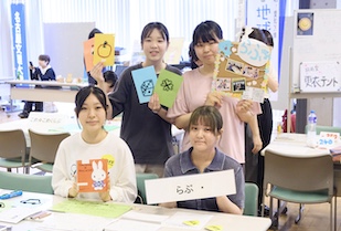 「らぶ・(てん)」は、点字を学んで、イベントなどを通して点字の必要性について広める学生団体です。今回の出展では、目をつむって、モールで描いたイラストを手で触って当てるゲームや、点字の単語を読み解くワーク、点字器を使って自分の名前を打つワークショップを用意し、視覚に障がいがある当事者の気持ちを体験してもらいました。訪れたお客様からは、モールで描いたイラストを当てるゲームが実際にやってみると難しかったと感想をいただきました。学生たちは、「まだ知られていない点字の必要性を知ってもらい、普及につなげていきたい」と語りました。