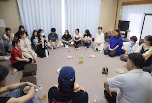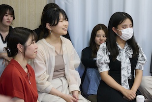 交流会では「長久手市は日本一若い街であること」「外国人住民の増加」「健康寿命の高さ」など、地域の現状や課題にも話題が広がりました。伝統を守りながら新しい取り組みを続けていく長久手市の姿や、自然環境と開発のバランスといったテーマについても意見が交わされ、学生たちは地域社会を多角的に捉えるきっかけを得ることができました。今回の上映会と交流会は、映像制作という学びを超えて、地域と大学をつなぎ、互いの思いを分かち合う機会となりました。学生たちは「もっと長久手の魅力を取材したい」と意欲を語り、地域活動に関わることの意義を実感していました。