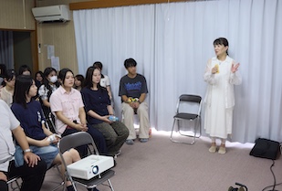 学生制作映像「長久手人」を上映し、長久手市への理解を深めました。