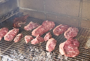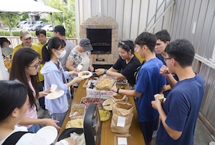 平吹先生のお話の後は、トルカーザの皆さんと一緒にブラジルのバーベキュー料理「シュハスコ(CHURRASCO)」を楽しみました。シュハスコはお祝いごとやイベントで欠かせないブラジルで日常的な食文化です。テーブルにはお肉やサラダ、デザートなど多彩な料理が並び、学生たちは本場の味を楽しみながらブラジルの方々との交流を深めました。普段なかなか口にする機会のない料理を味わい、同時にブラジルの文化に触れることで、日本との違いを肌で感じ取っている様子でした。