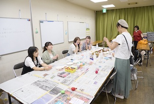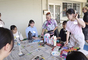 その後は、保見団地を舞台に多国籍住民とアーティストが地域の課題を探り、アート活動を通じてコミュニティの活性化を目指す「保見アートプロジェクト」の一環である「とよたデカスプロジェクト」のワークショップに参加。風船を使ったスクイーズや宇宙キーホルダーづくり、ペイント体験など、学生たちは興味のあるワークショップを選び、住民との交流を深めました。br>