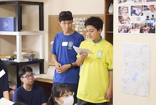 その後はブラジルにちなんだクイズ大会が開かれ、サンドラさんのお話に出てきた地理や歴史、文化に関する問題に学生たちはゲーム感覚で挑戦。ポイント制で進められ、上位者にはプレゼントも贈られるなど大いに盛り上がりました。