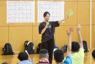以前参加したスペシャルオリンピックスのボウリング大会やサンクスパーティーでのご縁から、今回のイベントでは司会として参加しました。これまでは、司会進行を務める際にスポーツに参加するアスリートの方々と直接交流する機会はほとんどありませんでした。そこで今回は、できるだけ多くのアスリートと関わることを意識しました。特別支援学校の実習を終えたばかりで、「わかりやすく端的に伝えること」「明るい声のトーン」「肯定的な声掛け」を学んでいたので、実際の場面でそれらを意識して実践しました。うまくボールを投げられない時も、「あと少しで届くね」といった前向きな声かけを心がけ、グータッチなどのボディコミュニケーションも取り入れることで、多くの方と交流できたと思います。司会進行を務める中で身につけた、柔軟な対応力や適切な言葉遣い、そして周囲を広く見る力は、卒業後にも活かせるものだと実感しています。