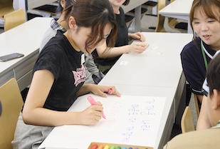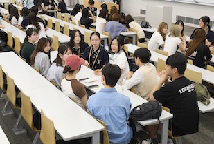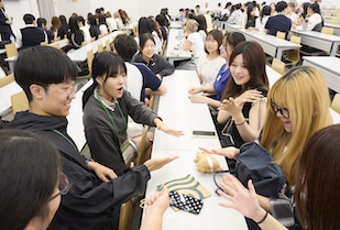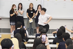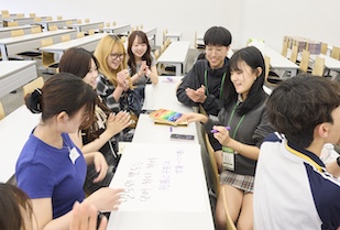 交流文化学部では国際交流に力を入れており、2025年9月19日(金)に、日韓文化交流基金韓国高校生訪日団を迎え入れ、本学の交流文化学部学生との交流会を実施しました。交流文化学部の全学年から希望者が集まり、韓国の高校生たちと8人前後の10チームを編成。りんご、ぶどう、スイカ、桃、梨など、果物を冠したチーム名が付けられました。