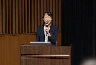 講演会の座長は、CCCセンター長の榎裕美先生。基調講演とシンポジウムの統括として「共創する未来に向かっていきます」とCCCが果たす使命をあらためて表明するとともに、「CCCは発足当初から企業、NPO、自治体、他大学など地域のさまざまな方々と協働し、本当に大きく成長しました。来年2026年は、CCC開設20周年。これからも一歩一歩、みんなで進みたいと思います」と晴れやかな笑顔で誓いの言葉を述べられました。