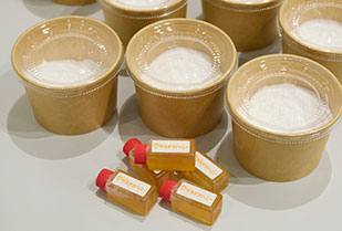 CCCの学生ボランティアは、事前に材料の配合を考え、何度も試作を重ねました。園児や小学生の子どもたちが参加することを想定し、バスボム作りで使う重曹とクエン酸は、食用グレードのものを用意。当日は、参加者一人ひとりに作り方を説明しながら、「万が一、お子さんが口に入れても大丈夫です」と伝えていました。