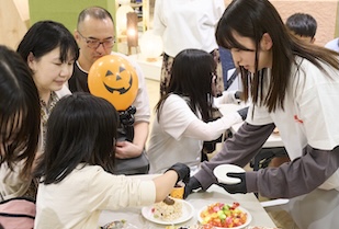 子どもたちが夢中で作り上げたお菓子の家は、最後に丁寧に箱詰めされ、思い出とともに持ち帰られました。愛知淑徳大学では、このように机上の学びに留まらず、地域社会や企業と連携しながら、自らの創造性を社会に還元する力を養う機会が豊富に用意されています。