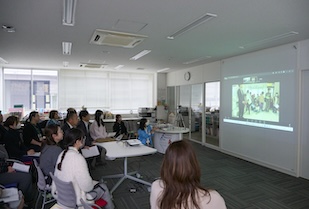 長久手キャンパスのCCC(コミュニティ・コラボレーションセンター)が鑑賞会場となり、子どもたちが通う放課後等デイサービスの施設をライブ中継で接続。