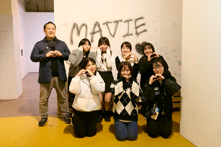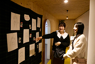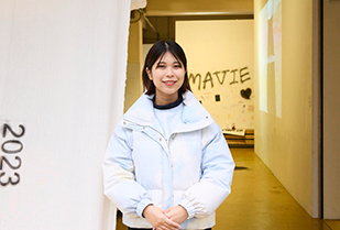 先輩が作品展示を開催していたことから、私もやってみたい!と思い、今回の企画に挑戦。私はプロデューサーやディレクターのような立ち位置として、全体の企画や進行管理を務め、皆と相談しながら一緒に大きなものを作り上げてきました。仕事の割り振りや連絡など準備はとても大変でしたが、ゼミの仲間や学外の友人など、多くの人に協力してもらっていることもあり、完成したときの達成感は大きかったです。実社会では今回のように色々な人と協力して取り組む仕事も多いと思うので、今後も自分の役割を意識しながら他人と連携してさまざまなことに挑戦していきたいです。