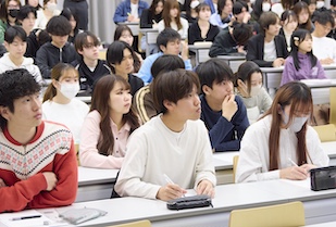 このような失敗でも東海鉄工様が現在もご活躍できているのは自身に「恵まれた環境と良い家庭と運の良さ」があるからこそだと話されました。このようなご経験から学生たちには「困難は永遠には続かない。必ずチャンスが訪れるので、それを掴むために精神的なタフさを身に着けてほしい」とアドバイスされ、講義を締めくくられました。