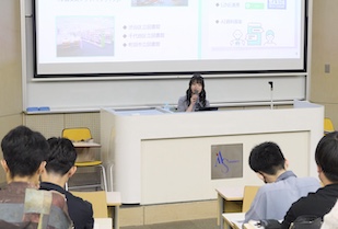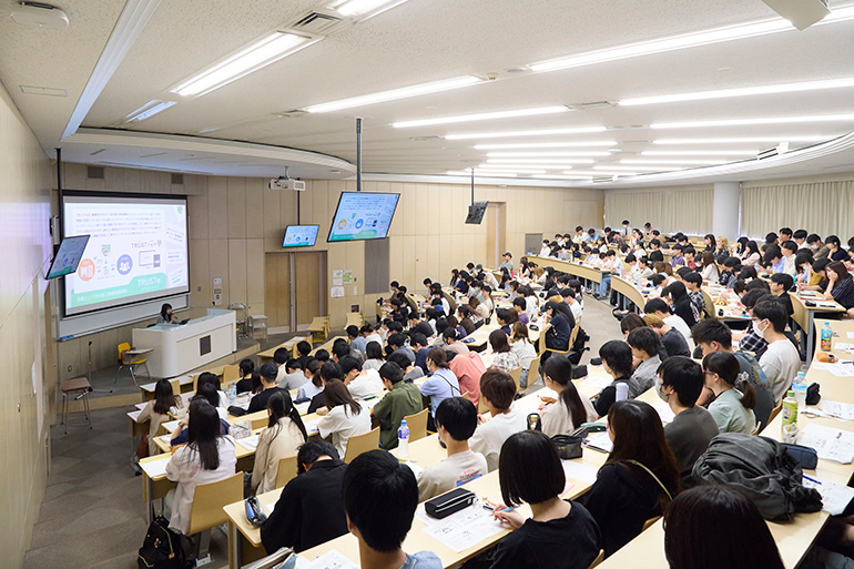2025年6月28日(土)、人間情報学部の3年生を対象に実施されたキャリアデザインの授業では、一般社団法人日本プライバシー認証機構 近藤里咲様と大日本印刷会社 本田忠様をお招きし、ご自身の経験をもとに就職活動で意識すべき点や将来を考えるうえでのヒントについてお話しいただきました。