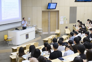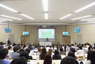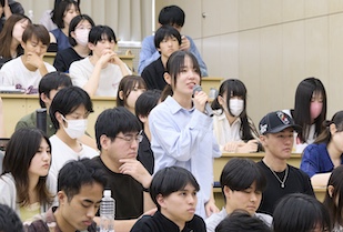また、学⽣たちが就活において「何を動機として、企業選びをしていくといいのか」といった視点や今の学びを活かして、社会にどんな変化を与えたいのかなど、企業⾯接を受ける際のポイントなどもお話されました。最後に 「社会に出ると、想定外のことも多々あると思うが、それは、自分の枠を広げる成⻑の機会と捉えて楽しむ気持ちで取り組んでほしい。そして、⼈との対話を⼤切にしてほしい」と締めくくられました。