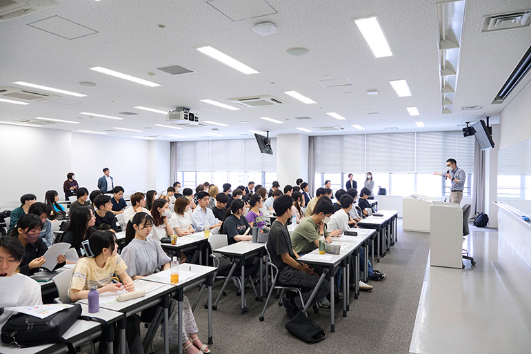 また、「生きる・働く・学ぶ」のライフワークハーモニーの実現について、「一生懸命に働くことで、人生が豊かになっていく。仕事と生活の時間的バランスだけでなく、学び、働くことでより良い人生を送れるように、“働き甲斐”改革の推進を実行していきたい」とお話しされました。地域の活性化をはじめ、社員一人ひとりの人生の充実における考え方まで多角的な視点でのお話は、これから社会に出ていく学生たちの心にきっと響いたはずです。