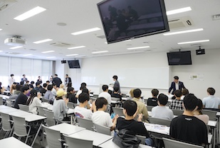 経営者からのお話が終わると、次は学生の質問タイムに。「就職活動ではどのようにして業界研究をしたらいいですか?」といった就職活動に直結する質問から、「学生団体の幹事長を務めていますが、人がついてくるリーダーになるためにはどうしたらいいでしょうか」といった学生らしい悩みなどさまざまな質問が飛び交い、経営者の皆さまは1つひとつの質問に丁寧にお答えくださいました。