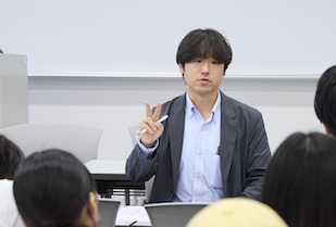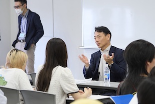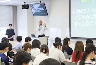 講義『経営者と話そう〜社会で働く意味を考えよう』は、6月13日(金)、27日(金)の2回にわたっておこなわれ、6月13日(金)には株式会社MRT 村田直喜社長、有限会社パール金属 堀口武人社長、株式会社サンキ 安藤健一郎社長、株式会社エリアリカ 小笠原有紀社長、昭和鋼機株式会社 芝田康太人事課長、株式会社トヨコン 明石耕作社長の6名にお越しいただきました。