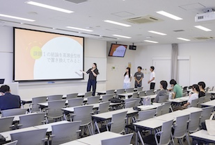 本学のビジネス学部は経済学や経営学、マーケティング、会計などについて、理論と実践の両面から学んでいます。今年度も3年生を対象に企業と連携し、現実の課題に対する企画の考案に取り組む授業「チャレンジプログラム」を展開。「ものづくり」「まちづくり」「プロモーション」「ホスピタリティ」の4ジャンルのうち、今回紹介するのは「ものづくり」です。