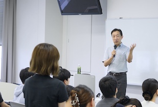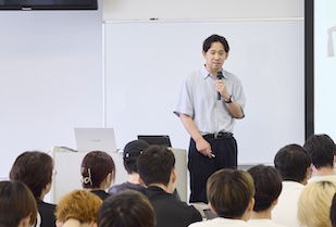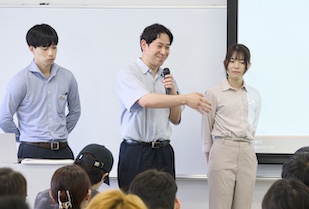 学生に向けて、「大企業が必ずしもすべてにおいて優れているとは限りません。中小企業も視野に入れて就職活動を進め、自分自身の軸をしっかり持って取り組んでください」と力強いメッセージを送られました。