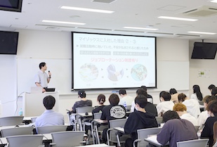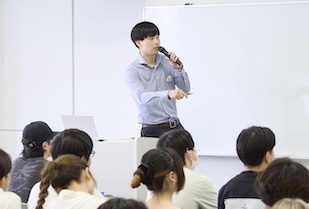 ビジネス学部では、専門知識の習得にとどまらず、実際の現場で活かせる実践的なスキルを磨くための多様な授業を展開。その一つである「中小企業を学ぶ」では、実際に中小企業で活躍する経営者や従業員の方々を講師としてお招きし、企業のリアルな姿や学生一人ひとりが“自分にとって働くとは何か”を考える貴重な機会となっています。最終回は、7月に開催された講義の様子を紹介します。