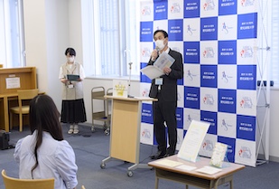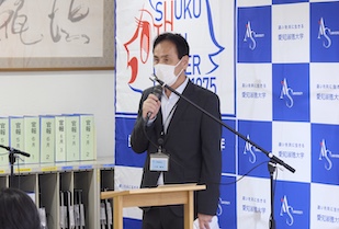 55作品の応募があった今回。授賞式では三和義秀図書館長が「2011年から続く書評大賞では、年々、学生たちの批評の質や文章作成の能力の向上を実感しています」と挨拶し、賞状・副賞の授与へと移りました。
