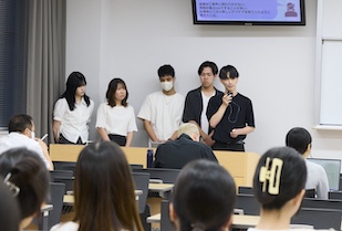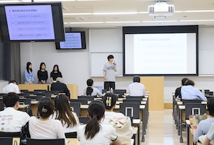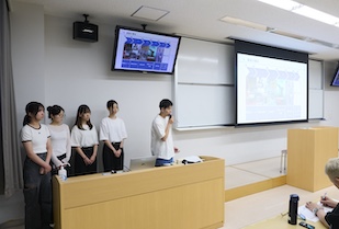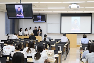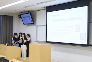 2025年6月2日(月)には中間発表がありました。各グループはこれまで担当企業を訪問したり、担当者様との打ち合わせを重ね、企業の課題やニーズをふまえながら、動画のコンセプトや構成を考えてきました。中間発表ではグループごとに制作した動画についてプレゼンテーションをおこない、企業の担当者様や非常勤講師の先生方から講評をいただき、さらにブラッシュアップを重ね、2025年7月14日(月)の最終発表に挑みました。