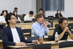 ビジネス学部のチャレンジプログラムD(プロモーション)は、マーケティングやプロモーションの考え方を学び、映像制作に取り組む授業です。本授業は本学教員の藤木が担当し、非常勤講師の茂籠先生および、元テレビ局プロデューサーで現在は動画制作会社の代表取締役である柵木先生とともに進めています。