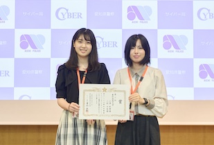 サイバーポリスチャレンジ終了後には順位が発表され、人間情報学部 感性工学専攻の小澤 彩寧さん、二村 日菜さんのチームが見事3位に入賞しました。