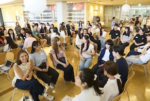 夏休みが明けて後期が始まると、キャンパスには9月から本学で留学をスタートさせる外国人留学生の姿が見られます。そんな留学生を対象に、2025年9月18日(木)、本学の日本人学生バディが主催する「ウェルカムイベント」が開催されました。バディとは、外国人留学生とペアを組み、日常生活や授業などをサポートする学生のことです。バディたちは「学内で留学生と関わりたい」「国際交流に興味がある」という思いを持つ学生ばかり。この日はバディのほか、グローバルラウンジに常駐するSA(スチューデント・アシスタント)や、留学生寮iHouseで日常的なサポートを行うRA(レジデント・アシスタント)も参加し、留学生を温かく迎えました。