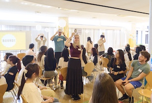 次は日本でもお馴染みの「伝言ゲーム」。ただし、日本語だけでなく英語、中国語、ドイツ語など難易度がアップ!日本語や英語はスムーズでも、中国語やドイツ語では苦戦する場面も。不正解でも笑いが起こり、会場は終始賑やかでした。