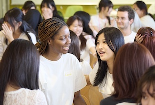 ウェルカムイベントは、いくつかのグループに分かれて自己紹介からスタート。名前、出身地、好きな食べ物、趣味、日本でやりたいことなどを話し、お互いの情報を交換しました。