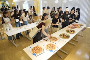 最後はビンゴでさらに盛り上がり、ゲームの後はパーティタイム。ピザやおにぎり、お菓子などの軽食がビュッフェ形式で並び、食事を楽しみながら交流を深めました。
