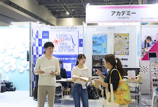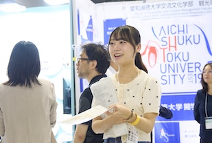 特別コーナー「アカデミー」では、本学の交流文化学部がブースを出展。2026年4月より、現行の「国際交流・観光専攻」から「観光専攻」へ名称を変更し、観光分野の学びをさらに深めることを来場者にアピールしました。会場では、野口ゼミと前島ゼミの学生がチラシを配布し、来場者に声をかけながら本学の学びについて紹介しました。