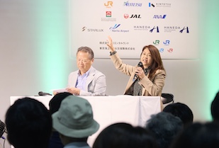 セッションの冒頭では、中部圏の観光課題について議論があり、永江様、福井様から「観光地としての中部圏の認知度を見直す必要がある」との意見があり、特に、永江様からは、「名古屋を中心に関東・関⻄・北陸へ約90分で移動できる地理的優位性を強調すべき」との提案がなされました。また、福井様からは、母都市名古屋を中心に個性的な魅力を持つ多数の「まち」をつなぐことで、「なごや圏」を面として誘客を行うプロジェクト「Co-machi観光」や、産官学連携による取り組みの重要性についても 言及がありました。