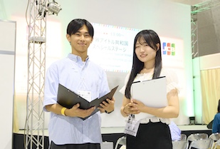 トークセッションの進行役を務めました。進行台本が届いてからは何度も練習を重ね、本番に臨みました。開始時間までの間、来場者の方にイベントの参加を呼びかけ、「本学では観光分野の学びがさらに充実します」と伝えると、興味を持って話を聞いてくださる方もいて、うれしく感じました。本番ではとても緊張しましたが、進行役にチャレンジして本当によかったと感じています。