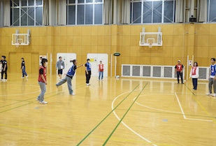 体を動かしながら、学部や学年の枠を越えて交流を深めました。