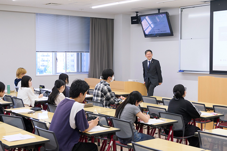 ビジネス学部では、経営学・商学・会計学・経済学などを幅広く学びながら、実践的なビジネススキルを身につけられることが大きな特徴です。中でも企業や自治体などの協力を得て、産官学で連携したアクティブラーニングを積極的に取り入れています。その一環として実施される「企業分析プロジェクト」では、実際の企業から直接話を伺い、財務諸表や経営の実態・課題を理解したうえで、各チームが企業分析を行い、結果を発表しています。
