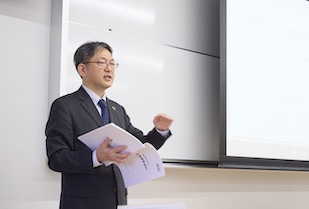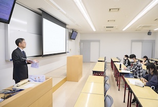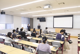 まず、倉橋様は資料を用いて、日本全体の広告費の概況や推移を示し、全産業を横断的に集計・分析した調査結果から広告事業やメディア事業の位置づけを解説しました。資料に記載された細かな数字の見方も丁寧に説明され、学生たちは一つひとつ意味を確かめながら積極的に分析に取り組んでいました。